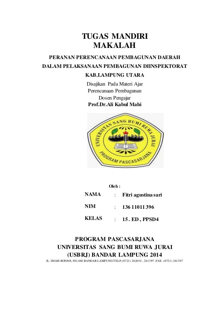 Makalah Perencanaan Daerah Dicapil Fitri By Achmadavandi Se Mm