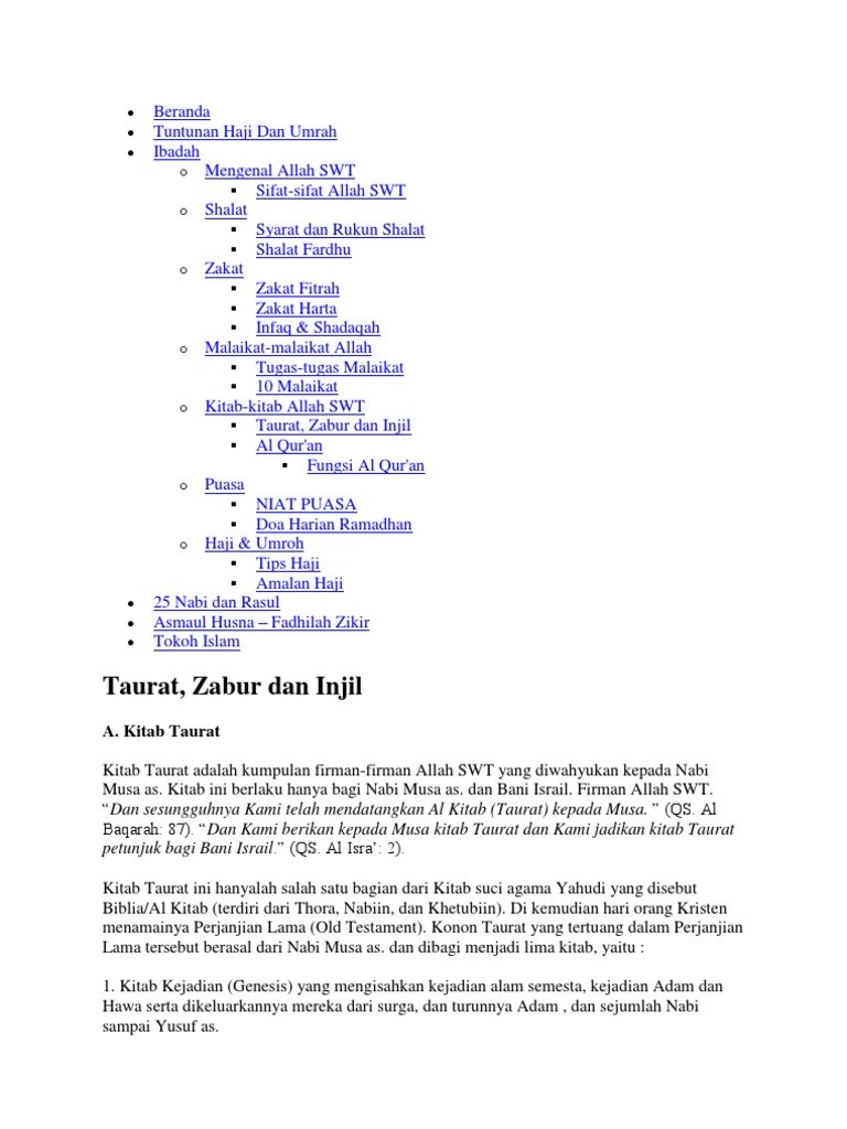 Orang Mukmin yang paling sempurna Imannya adalah yang paling baik. Kitab Allah swt yang dikenal oleh Orang orang Kristen dengan nama perjanjian lama old testament adalah. Agar manusia meng-esa-kan dan tidak menyekutukan-Nya dengan suatu apa pun.