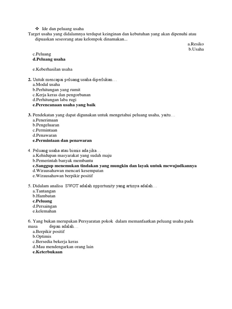Soal Ide Dan Peluang Usaha Pdf