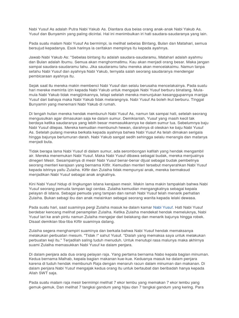 Nabi Yusuf As Adalah Putra Nabi Yakub As Pdf