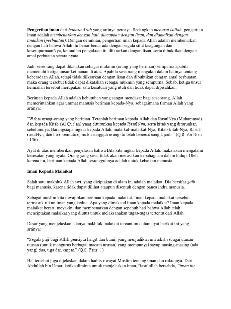 Pengertian Iman Dari Bahasa Arab Yang Artinya Percaya Pdf