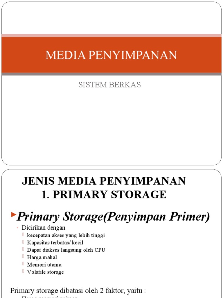 Media Penyimpanan Sistem Berkas Jenis Media Penyimpanan 1