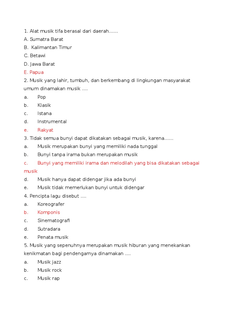 Pendidikan Dan Pembelajaran Soal Pilihan Ganda Usbn Seni Budaya Smp 2019