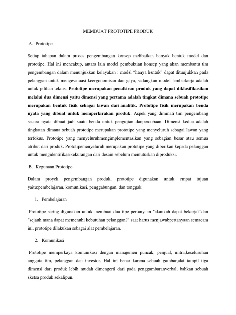 Prototipe biasanya digunakan sebagai. Menurut Hidayat 2012 dapat didefinisikan bahwa prototipe adalah. Sebagai bentuk dasar produk prototipe memiliki bagian yang ukuran dan bahan sama seperti jenis produk yang akan dibuat tetapi tidak harus difabrikasi dengan proses sebenarnya ditujukan untuk pengetesan untuk menentukan apakah produk bekerja sesuai desain yang diinginkan dan apakah produk memuaskan kebutuhan pelanggan. Karena kualitas suatu produk berhubungan erat dengan kepuasan pelanggan customer satisfaction serta keuntungan industri.