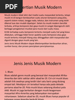 Jenis Musik Modern Dan Ciri Ciri Lagu Modern Indonesia Mata Pelajaran