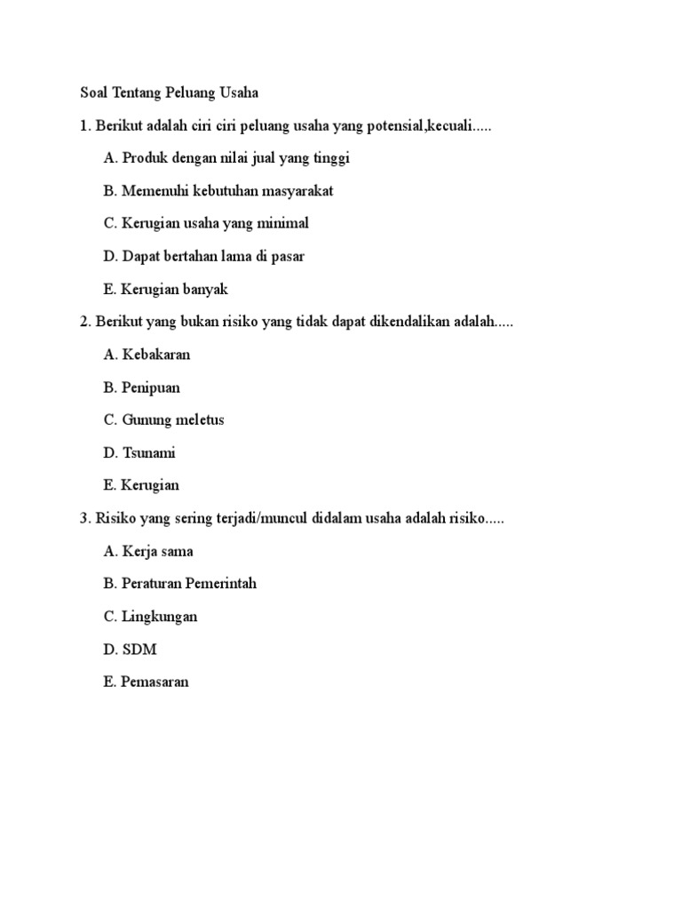 Soal Tentang Peluang Usaha Pdf