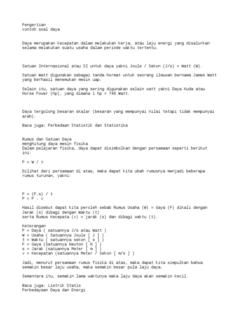 Rumus Usaha Dan Energi Beserta Contoh Soal Lengkap