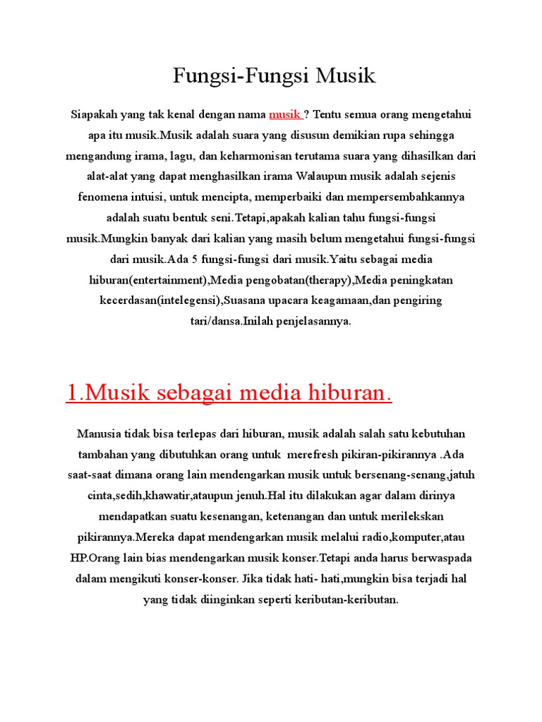 Essai1 Tuliskan 4 Fungsi Musik Sebagai Sarana Hiburan 2 Tuliskan 3 Fungsi Alat Musik Dan Brainly Co Id